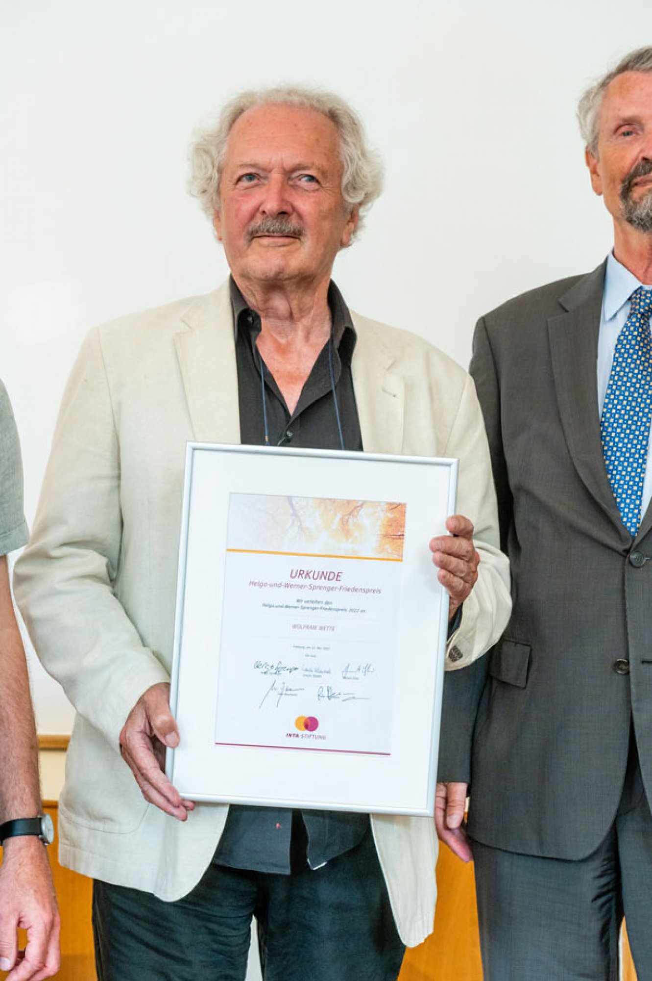 Prof. Dr. Wolfram Wette gilt mit seinem über 50-jährigen wissenschaftlichen Wirken als einer der renommiertesten und engagiertesten deutschen Militärhistoriker. Sein Wirken findet sowohl national als auch international große Anerkennung und Beachtung. Seine lebenslange Beschäftigung und Auseinandersetzung mit der Thematik von Krieg und Frieden und deren Logik – insbesondere mit den Ursachen von Kriegen zeichnen sein Wirken aus. Staatliche Friedensforschung ist ihm ein Herzensanliegen – genauso wie die enge Zusammenarbeit zwischen Politik und Wissenschaft.